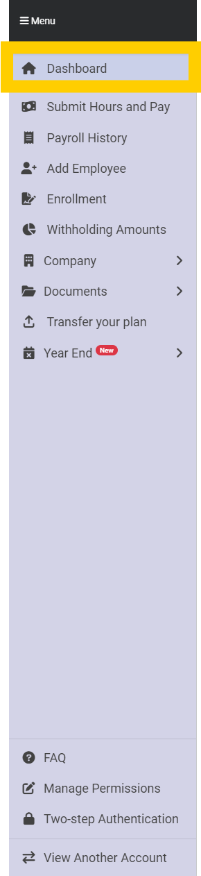 When you log into 401GO as a company administrative user, you’ll be taken to your Dashboard. You can go back to your Dashboard at any time by clicking the Dashboard button in the menu.
