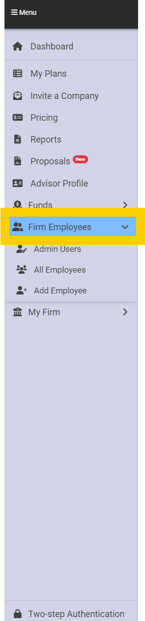 "Firm Employees" allow you to manage administrative users and partners of your firm.