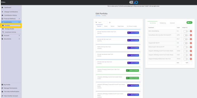 View your portfolio, change your investments, and use the strategy portfolio builder.