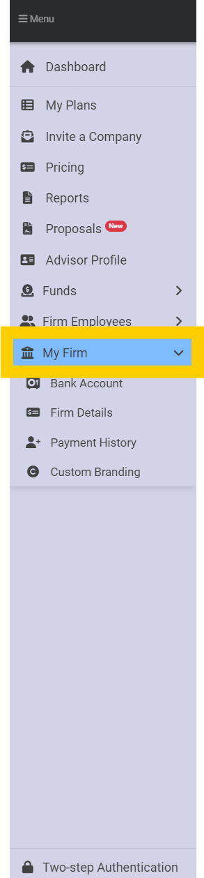 "My Firm" allows you to manage your payee information through adding bank account information, updating your firm details, and view payment history.