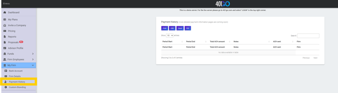 "Payment History" allows you visibility to all payments made from 401GO plans to your firm.